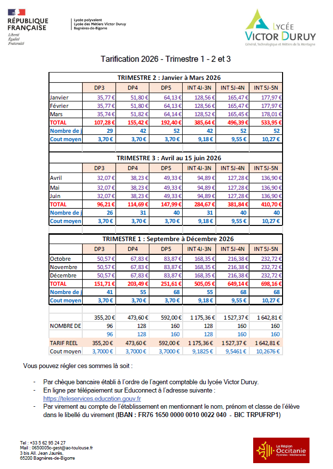 Demi pension et internat